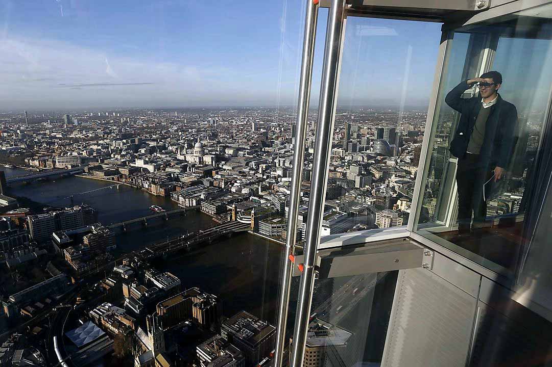 The Shard, en Londres, tiene una altura de 309 metros, lo que lo convierte en el edificio más alto de Londres. La plataforma de observación View from The Shard, situada en los pisos 68 y 72, ofrece vistas panorámicas de la ciudad y vistas aéreas de lugares de interés populares de Londres como el Tower Bridge, la Catedral de San Pablo y la Torre de Londres.