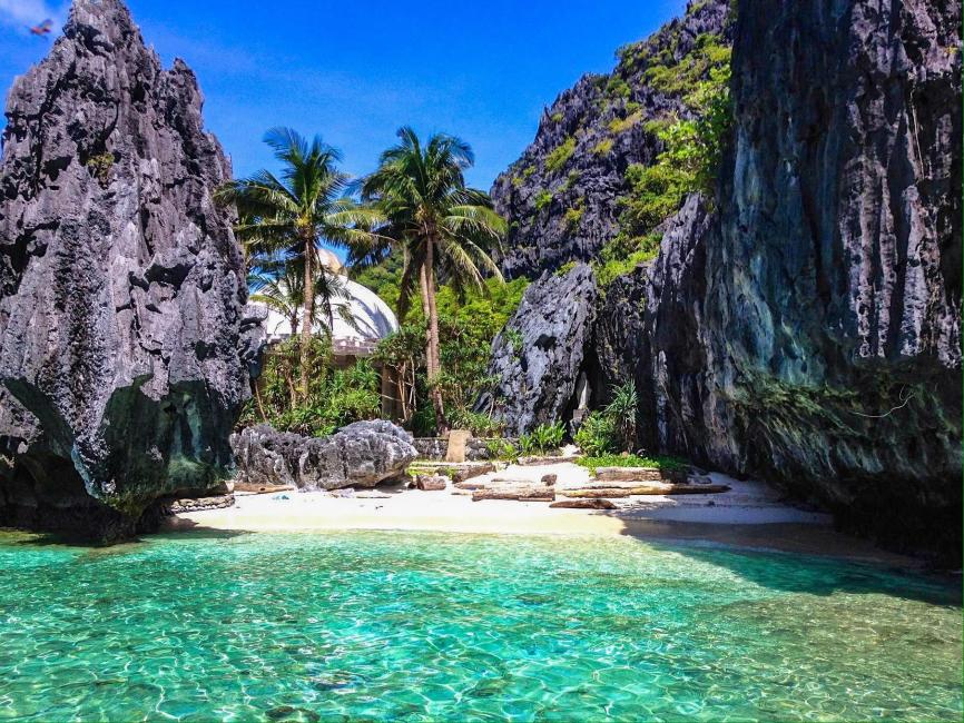 Accesible solo en barco, Playa Escondida se encuentra escondida entre imponentes acantilados de piedra caliza en Palawan. Su belleza aislada y su entorno natural la convierten en un lugar mágico donde los visitantes pueden disfrutar de la tranquilidad y la paz.