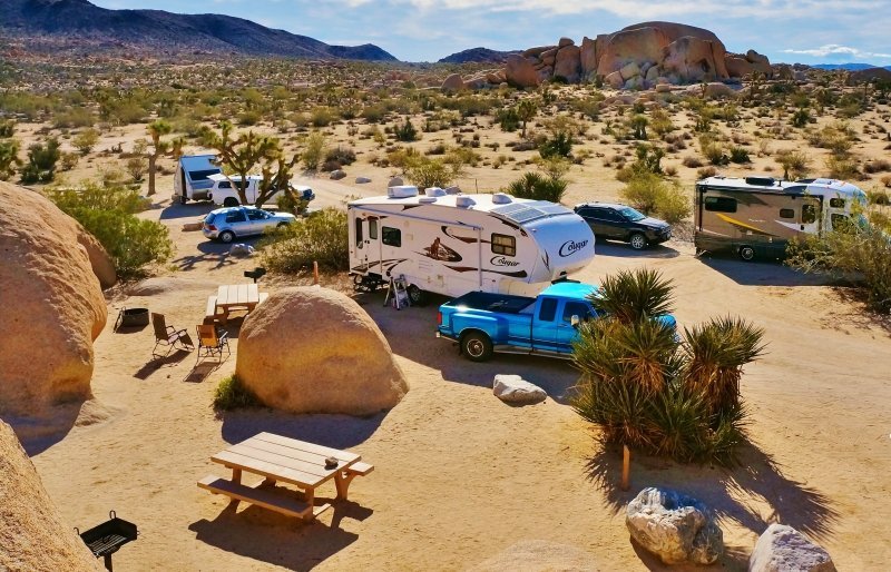 A poco más de dos horas de Los Ángeles, este parque es famoso por sus formaciones rocosas y los característicos árboles de Joshua. Con nueve campamentos desarrollados, destacan Jumbo Rocks, ideal para la observación del cielo nocturno, y Cottonwood Campground, perfecto para los entusiastas del senderismo.