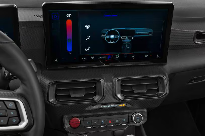 Frente al conductor hay un cuadro de instrumentos digital unido a una pantalla táctil de 13,2 pulgadas alimentada por el sistema Sync 4 de Ford. El panel de instrumentos tiene multitud de configuraciones, mientras que la pantalla táctil es fácil de leer y de acción rápida y cuenta con una estructura de menús relativamente sencilla. El sistema de navegación me pareció rápido y eficaz.
